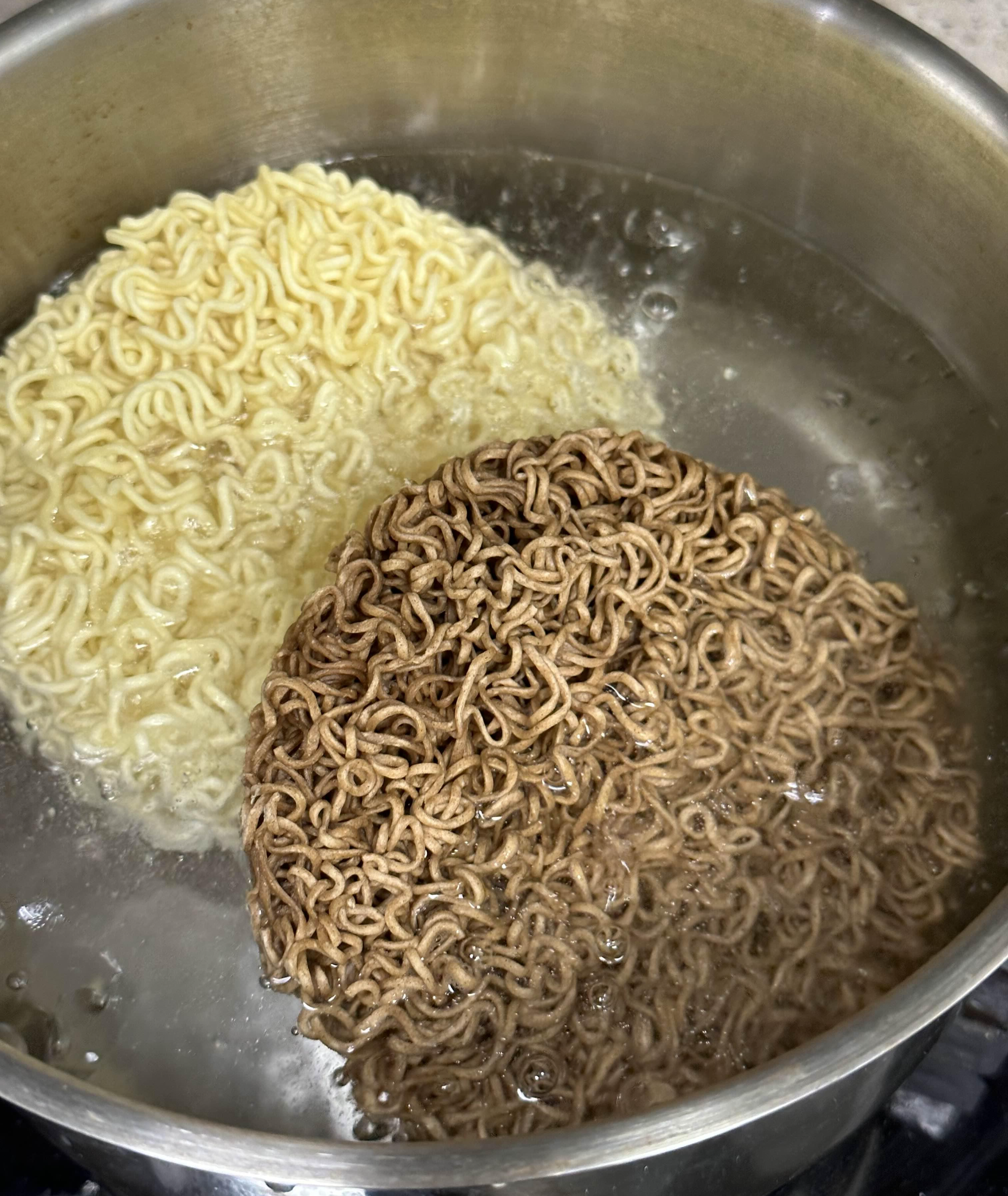 두 제품이 면 빼곤 다 같아서 섞어서 끓이기로 했다. (각 1봉 밖에 없어서..)